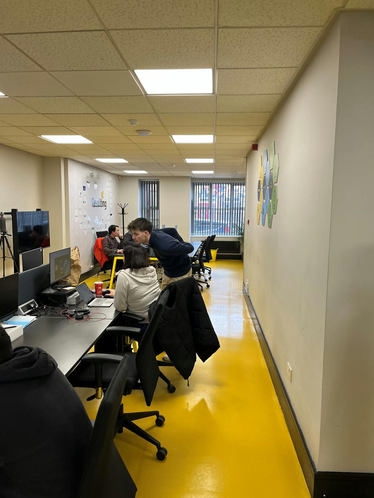 Internally, the offices are centrally heated, carpeted and provide both open-plan areas and private offices.