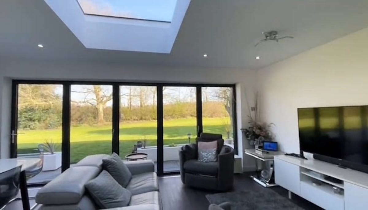 Sliding bifold doors which open out onto the side garden with a roof light.